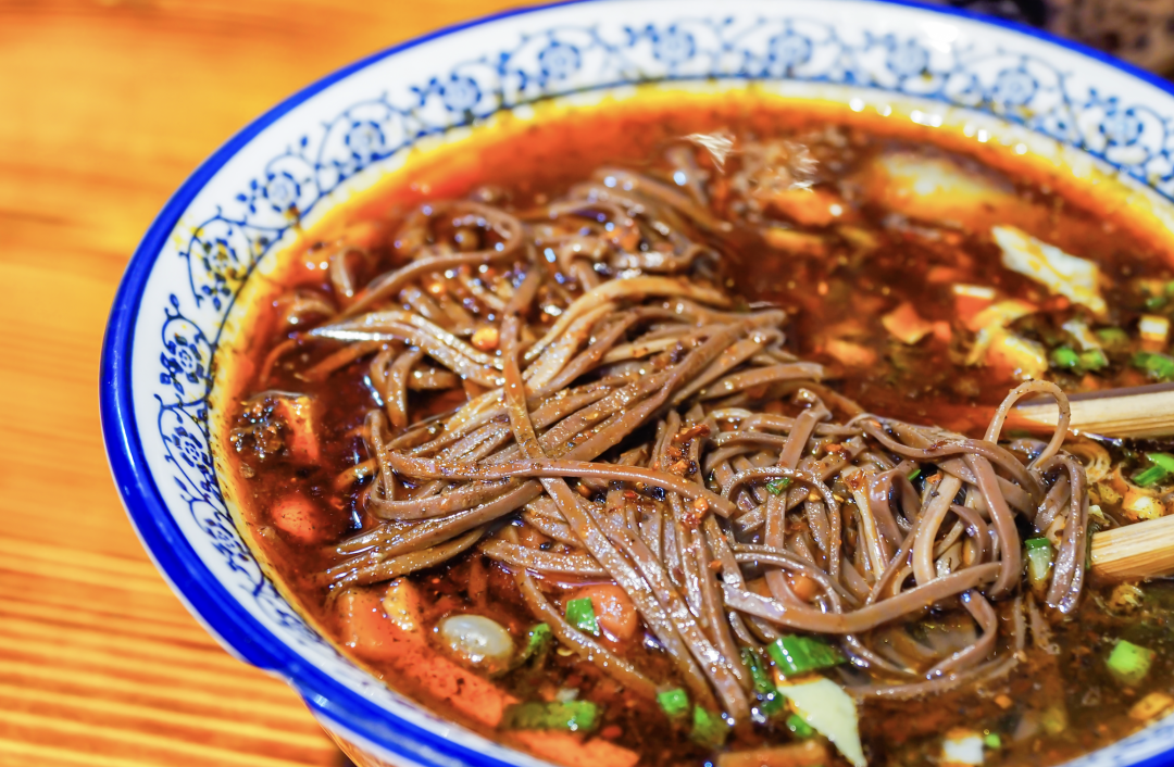 比“铡面”更硬核的是“血条面”,它起源于宝鸡麟游县,相传是因为唐太宗李世民的喜爱而流传开。它曾经是麟游地区红白喜事时必吃的食物,如今已经成为经典的宝鸡美食。