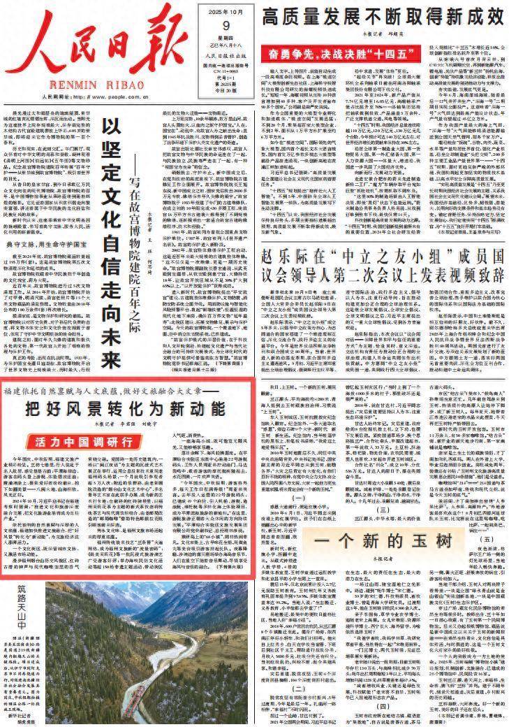 10月9日,人民日报头版“活力中国调研行”栏目刊发报道《把好风景转化为新动能》,点赞福建省依托独特的自然禀赋与深厚的人文底蕴,加快推进文旅融合,把“好风景”转化为“新动能”,为文旅经济注入澎湃活力。